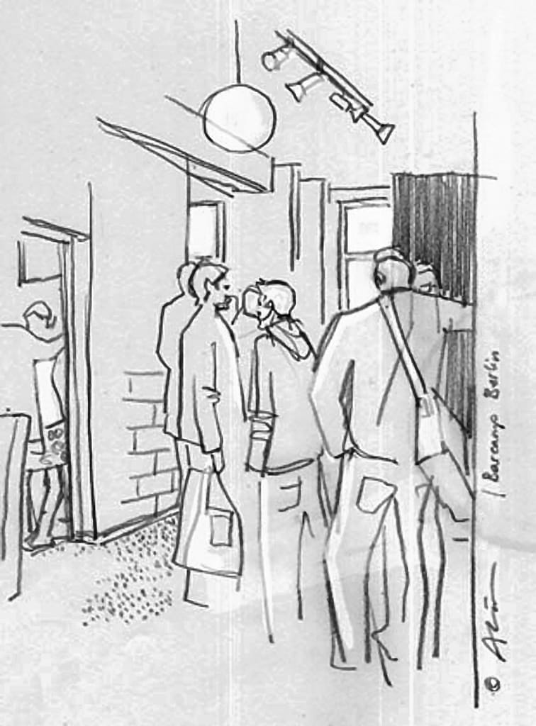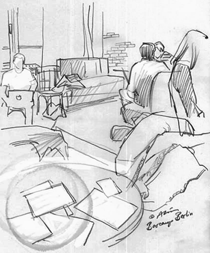 Ich besuchte ein Barcamp in Berlin zum Thema Design & Gestaltung. Zwischen den einzelnen Vorträgen hielt ich die Atmosphäre vor Ort auf einem Skizzenblock fest.